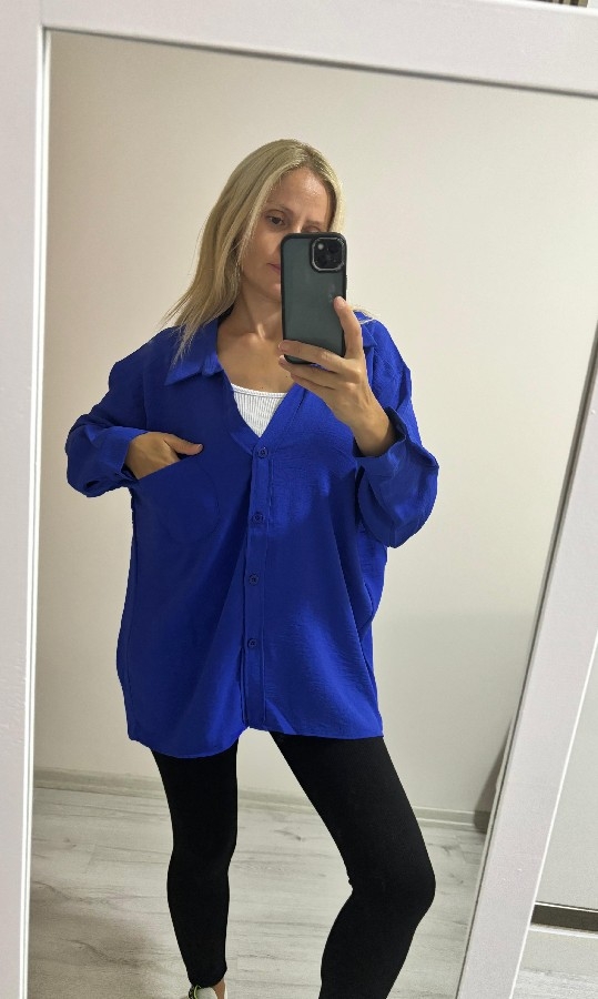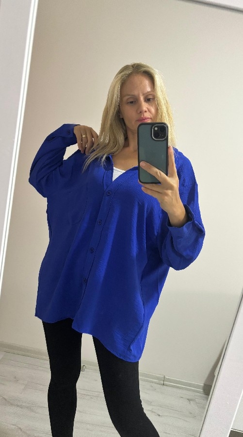 Basic Salaş Oversize Gömlek Mavi