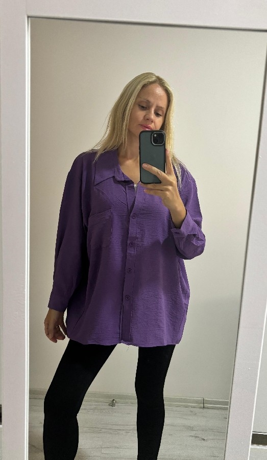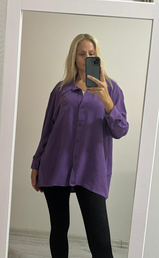 Basic Salaş Oversize Gömlek Mor