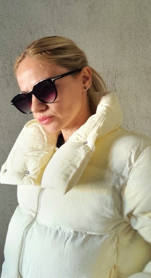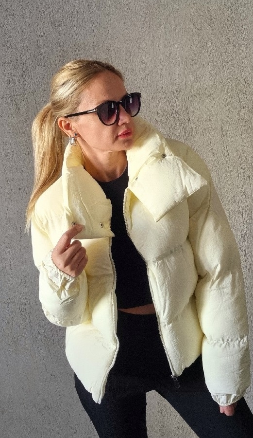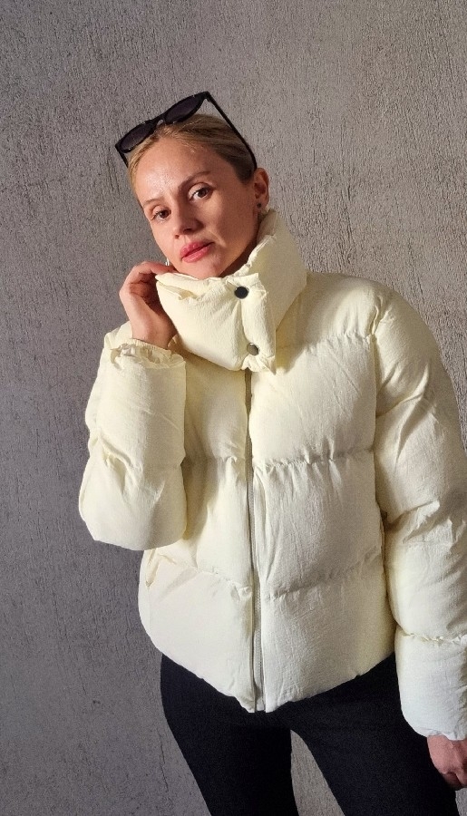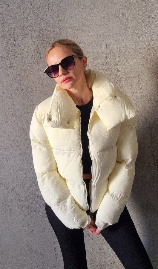 Dik Yaka Bej Şişme Mont
