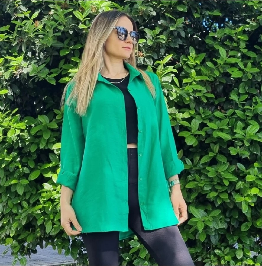 Kadın Basic Yeşil Gömlek rahat bir kombin için en uygun parça.