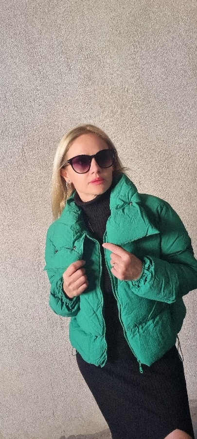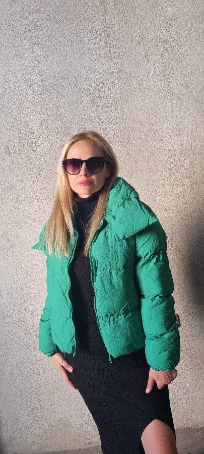 Kadın Dik Yaka Yeşil Mont