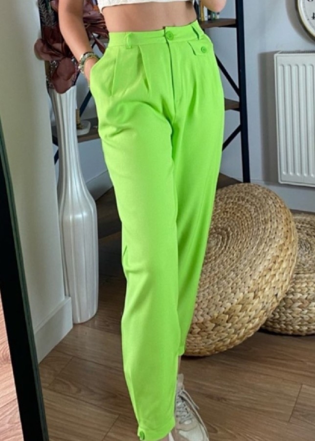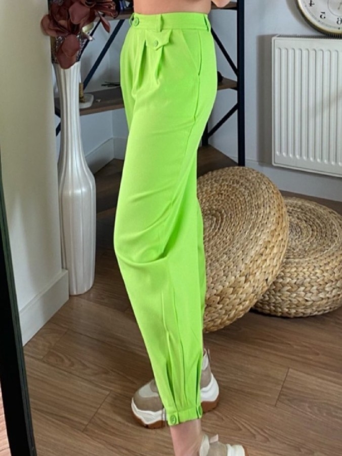 Kadın Yüksek Bel Rahat Kesim PAÇA DÜGMELİ pantolon