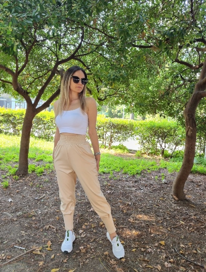 Kadın Yüksek Bel Bel Lastikli rahat kesim pantolon