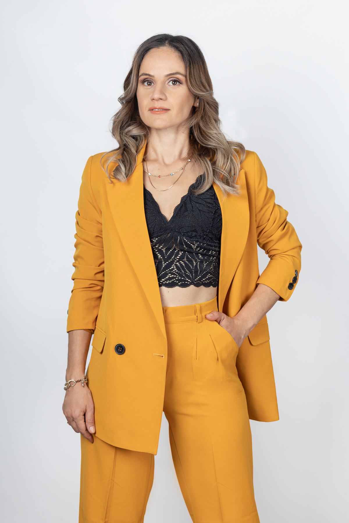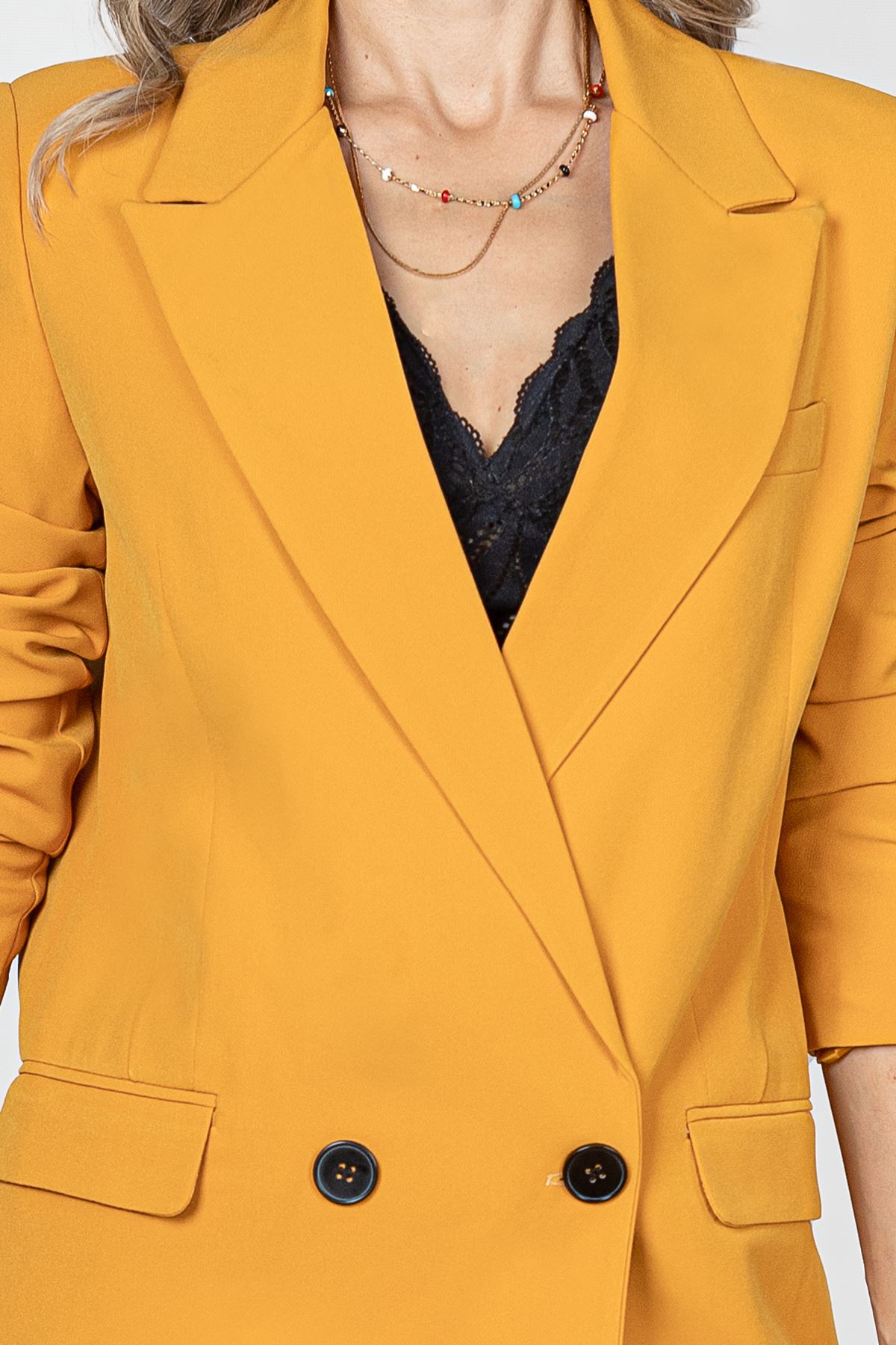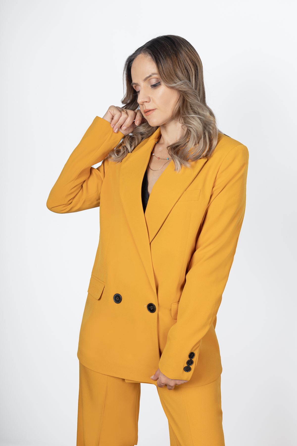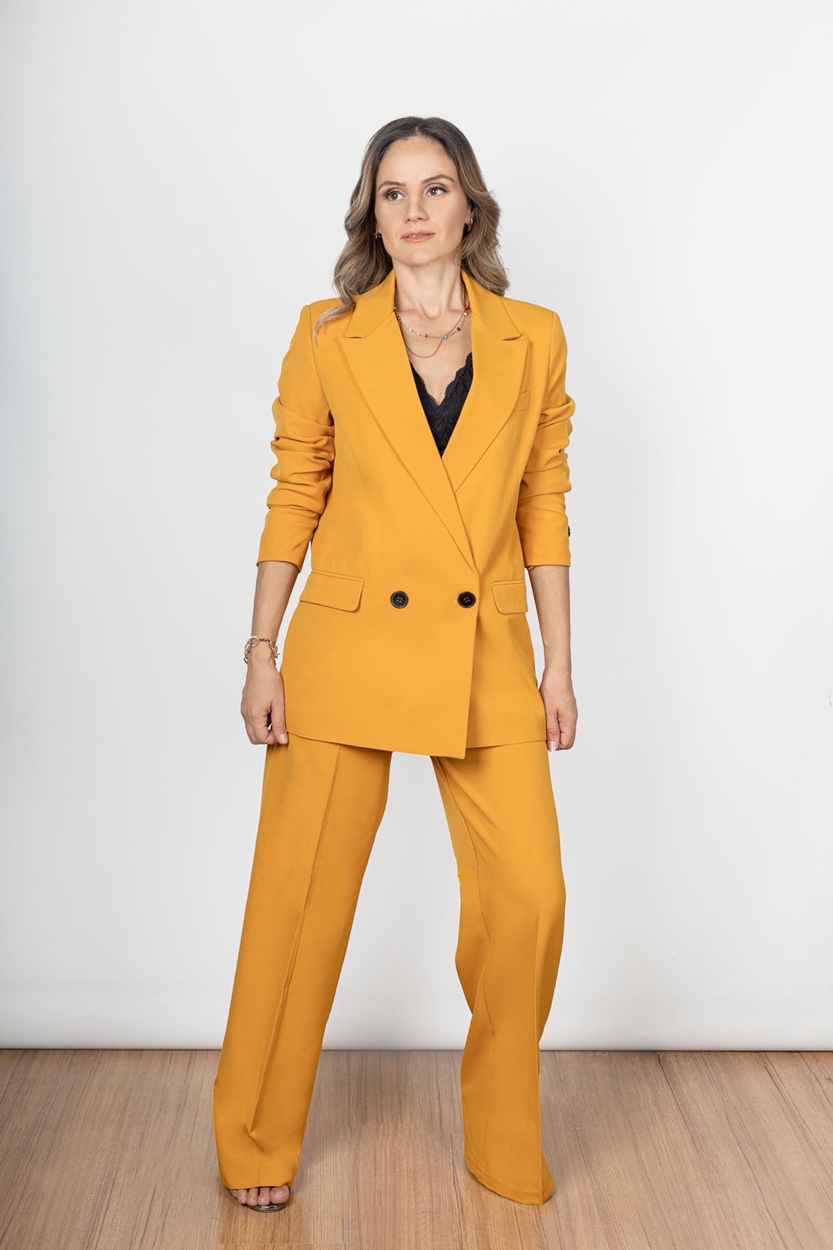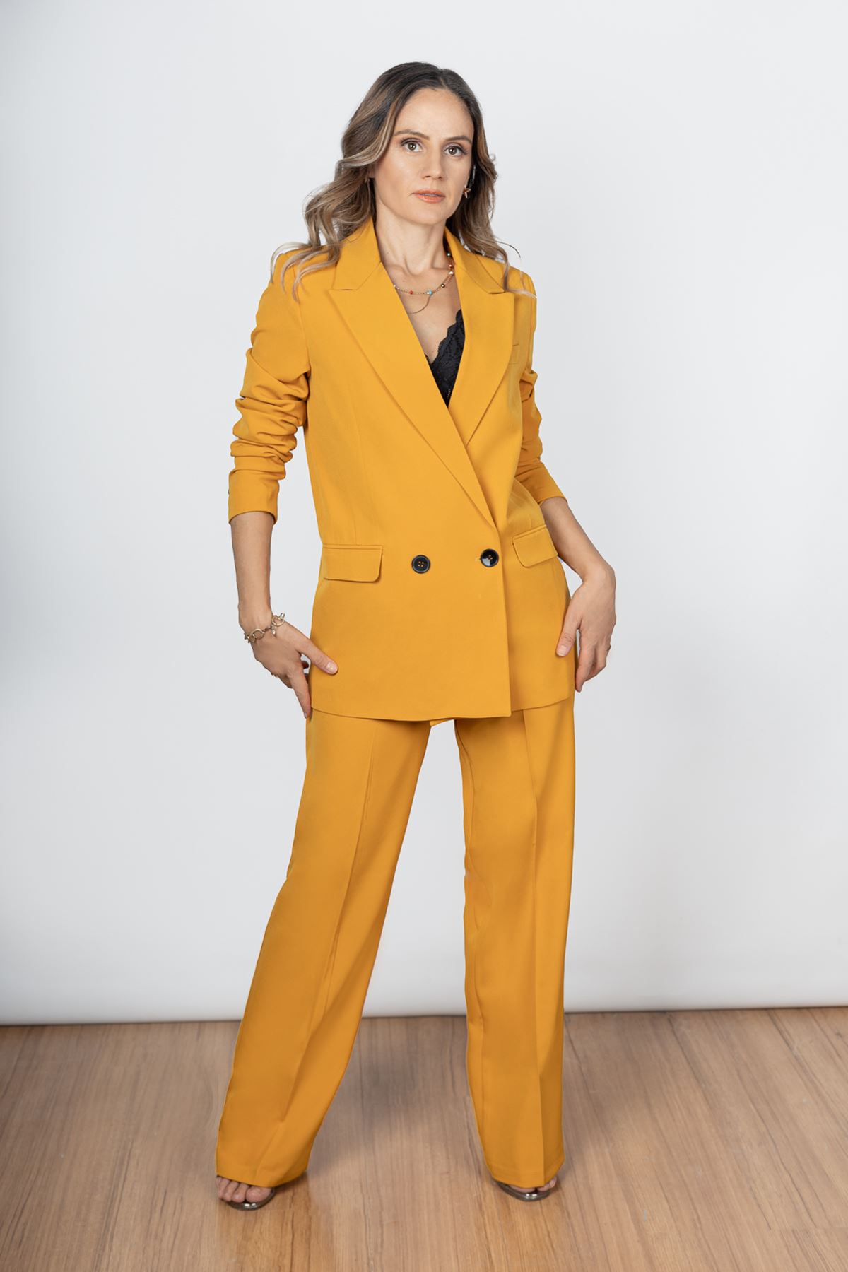 Palazzo Takım  Elbise model ölçüleri  boy:166  göğüs:85  bel:66   kalça:93  model üzerindeki  S bedendir.