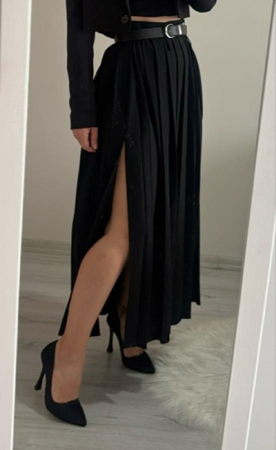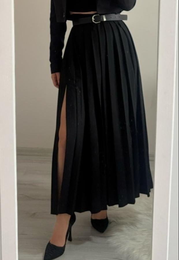 Kadın Piliseli Yan yırtmaçlı kemerli Etek Beden 40