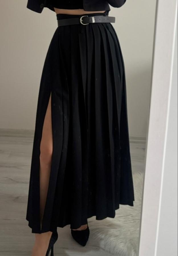 Piliseli Yan Yırtmaçlı Kemerli Etek